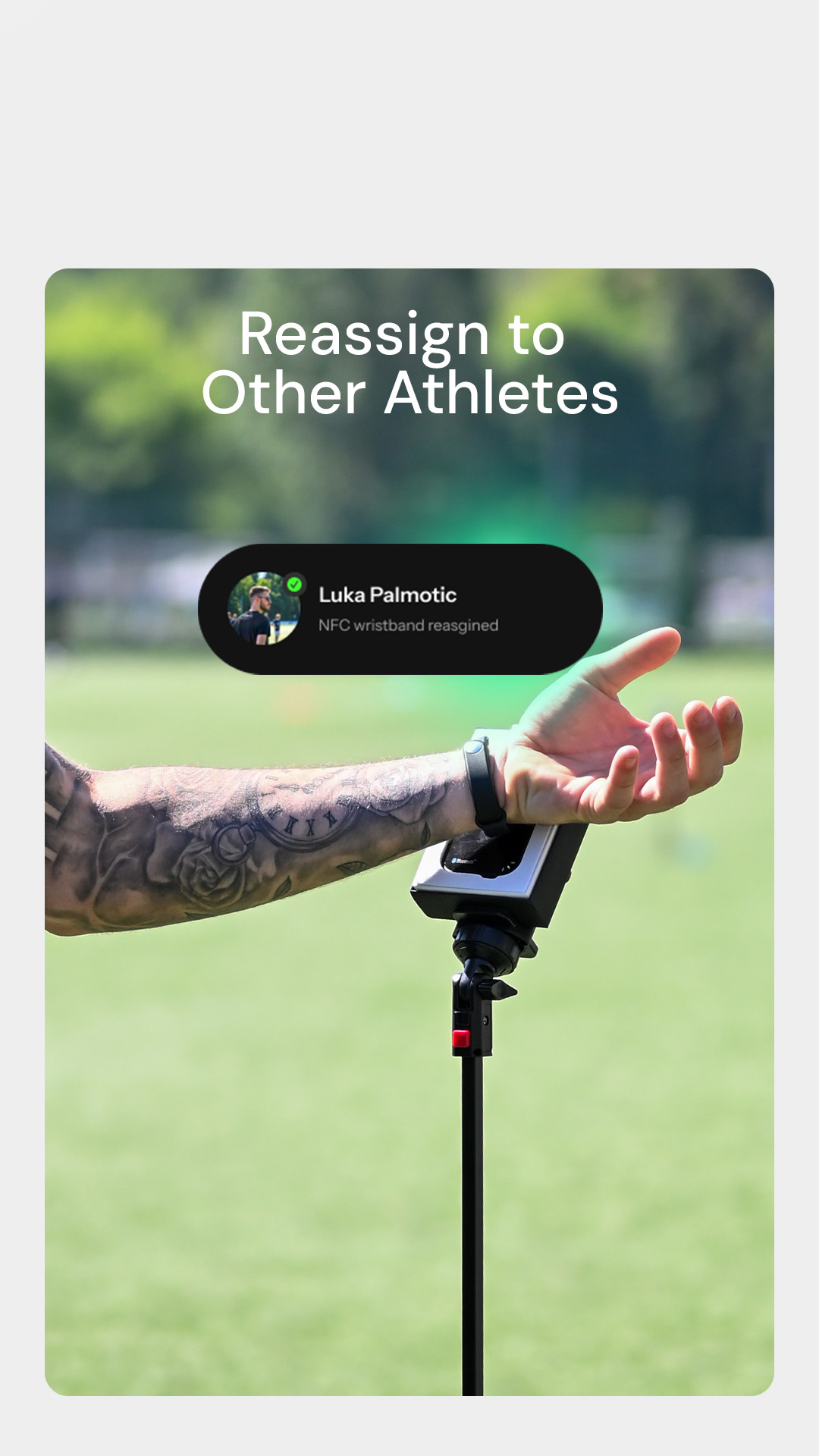 The NFC kit includes NFC wristbands and an NFC reader that help automate testing and training sessions. You can assign a wristband to a specific athlete, have them scan the band before each repetition, and the system will automatically start the drill and save the results. This streamlines the entire testing process and reduces manual input.